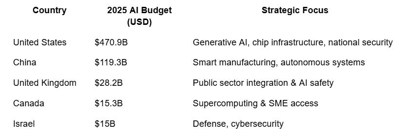 According to the 2025 AI Index Report, major nations are committing significant resources to secure an AI future: